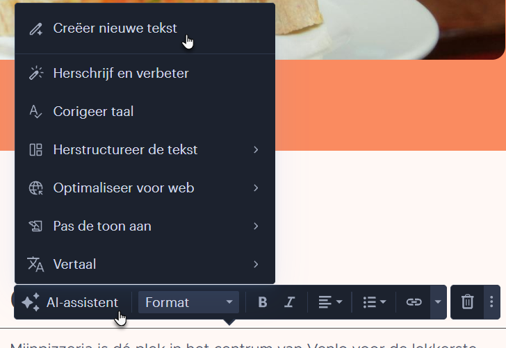 TIP: Je kunt AI ook gebruiken om hele secties te maken. Meer informatie vind je in de handleiding Hoe maak je een sectie met behulp van de AI-assistent.