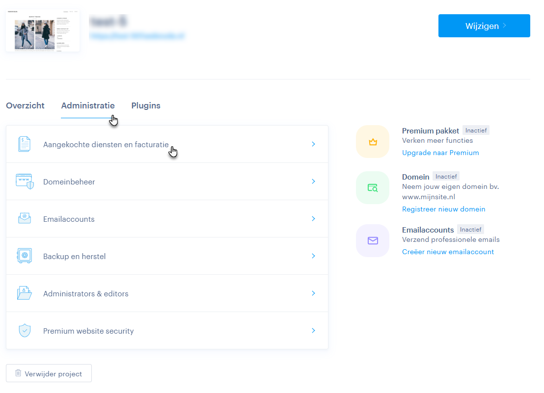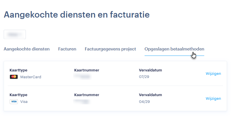 TIP: Bij betaling met een kaart wordt altijd de automatische verlenging ingeschakeld. Wil je diensten verlengen, dan kan dat rechtstreeks vanuit de projectadministratie. Gebruik je een nieuwe kaart, dan wordt de automatische verlenging aan die kaart gekoppeld.