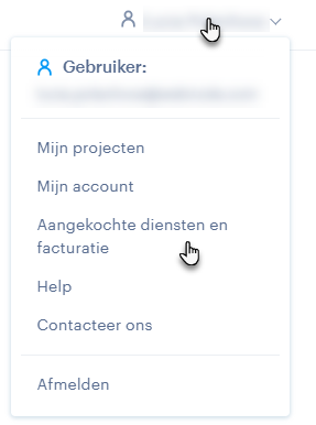2. Je kunt ook op het menu (het pictogram met het persoonnetje) rechtsboven klikken en vervolgens Aangeschafte diensten en facturatie selecteren.