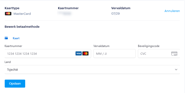 Als je op de knop Wijzigen klikt, kun je de kaartgegevens bijwerken.