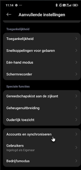 1. Open Instellingen op je telefoon en selecteer Accounts en synchroniseren in de sectie Aanvullende instellingen .