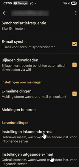 5. Selecteer Instellingen inkomende e-mail en vervolgens Instellingen uitgaande e-mail.