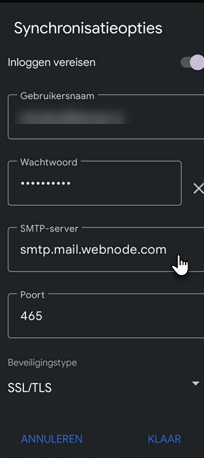 7. In Instellingen uitgaande e-mail wijzig de server naar smtp.mail.webnode.com.