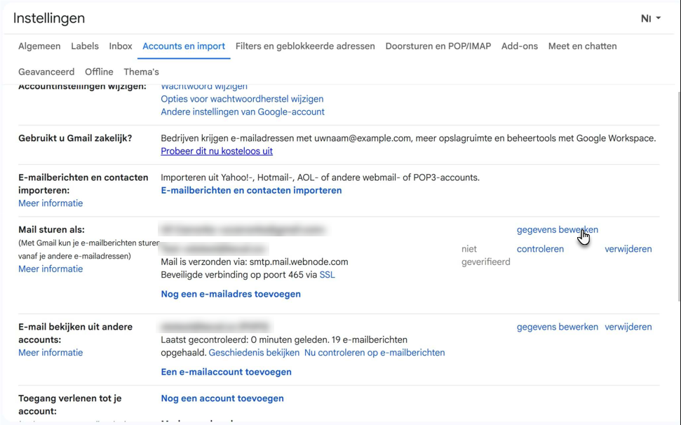 Waarschuwing: Vanaf 1 januari 2026 stopt Google met de ondersteuning van het POP3-mailprotocol binnen Gmail in webbrowsers. Meer informatie vind je in het artikel Gmail stopt met ondersteuning voor POP3 – zo los je dit op.