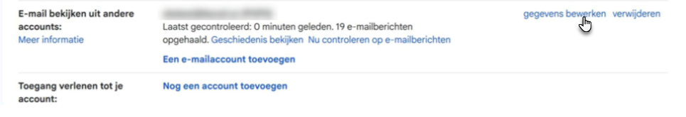 5. Scroll naar beneden naar E-mail bekijken uit andere accounts en klik op Gegevens bewerken voor het geselecteerde account.