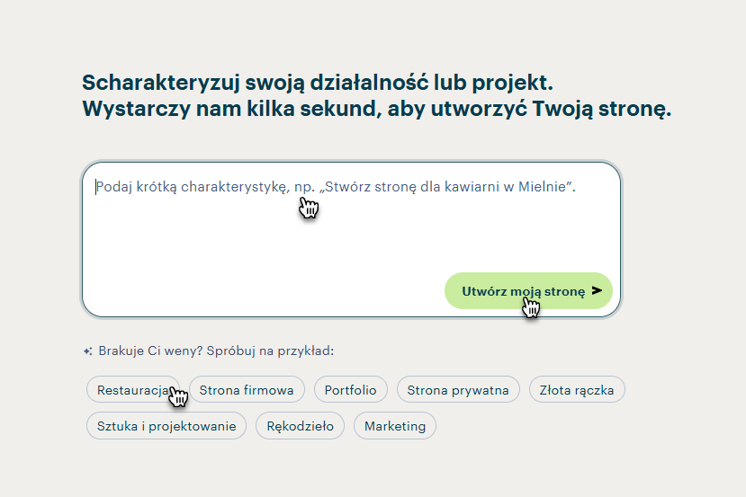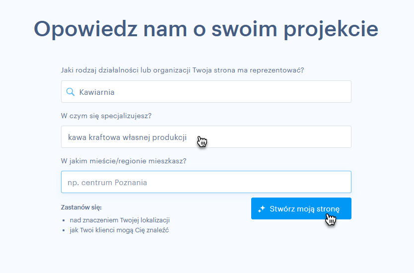 4. Scharekteryzuj swoją stronę internetową i kliknij przycisk Stwórz moją stronę.