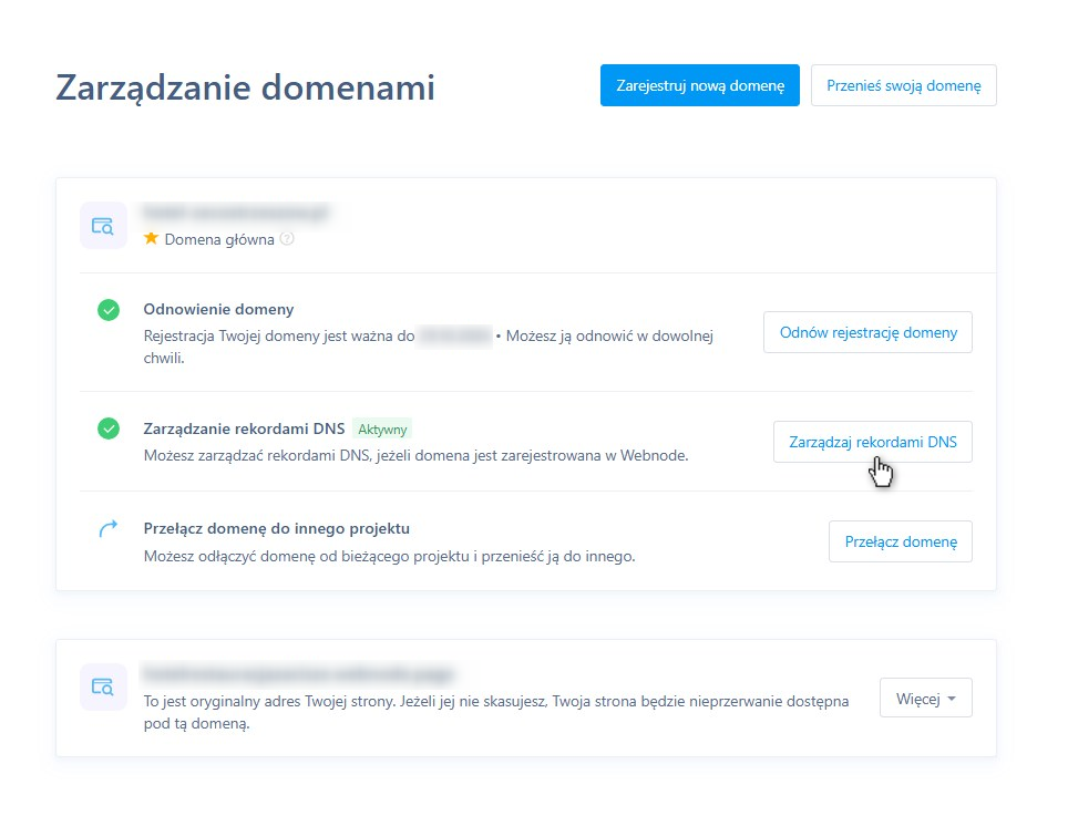 2. Kliknij przycisk Zarządzaj rekordami DNS obok wybranej domeny.