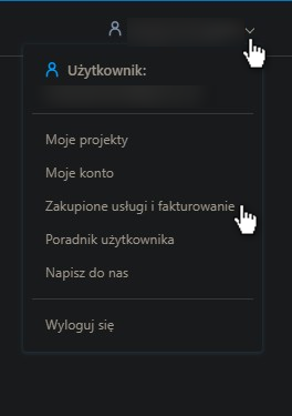 2. Możesz również skorzystać z sekcji Zakupione usługi i fakturowanie widoczne w menu w prawym górnym rogu ekranu (z sylwetką człowieka).