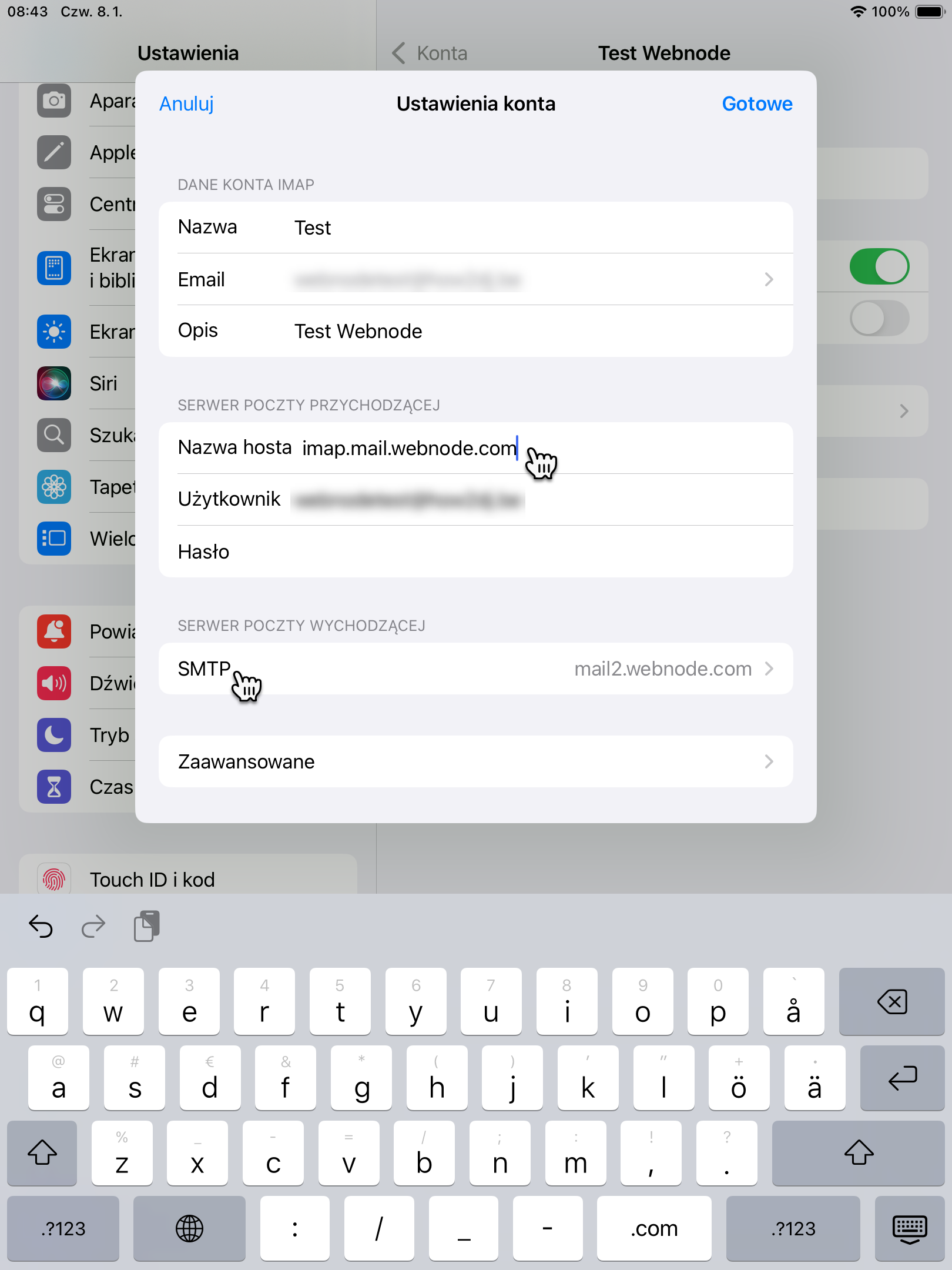 imap.mail.webnode.com (przychodzący) oraz smtp.mail.webnode.com (wychodzący).