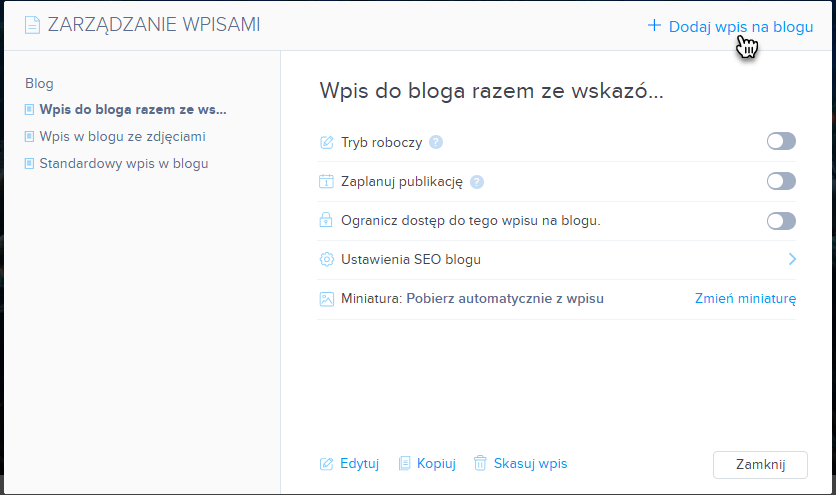 2. Wybierz Dodaj wpis na blogu.