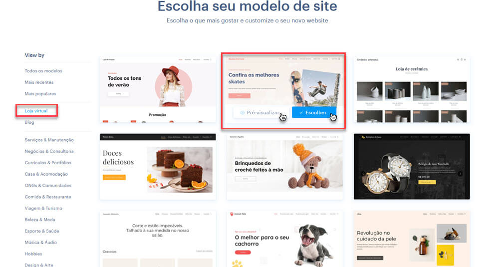 4. Escolha seu próprio template. Você poderá visualizá-lo antes de escolher clicando no botão Pré-visualizar.