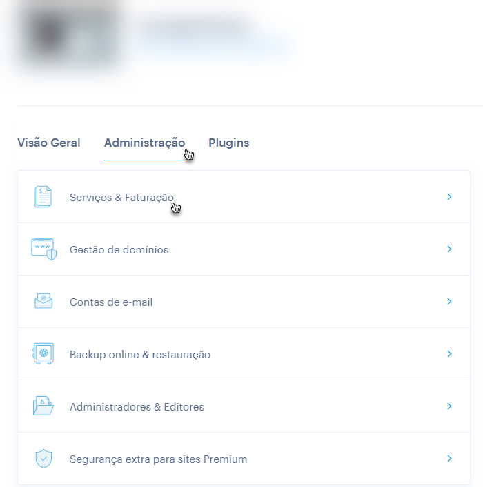 2. Alternativamente, clique na seção Serviços & Faturamento no menu que fica na parte superior direita.