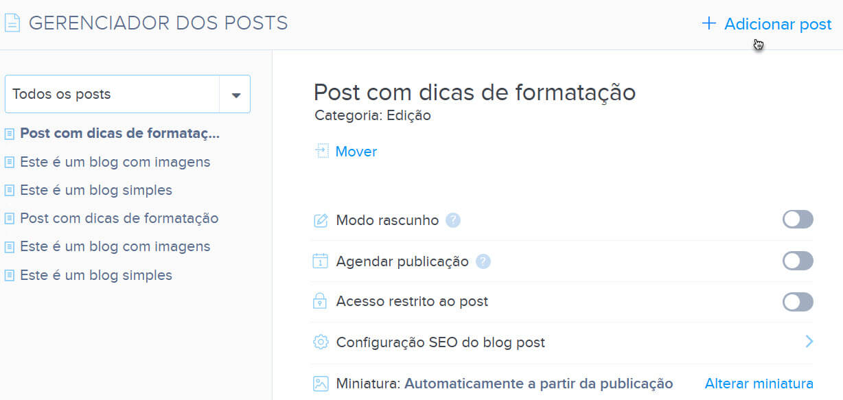 2. Selecione Adicionar post.