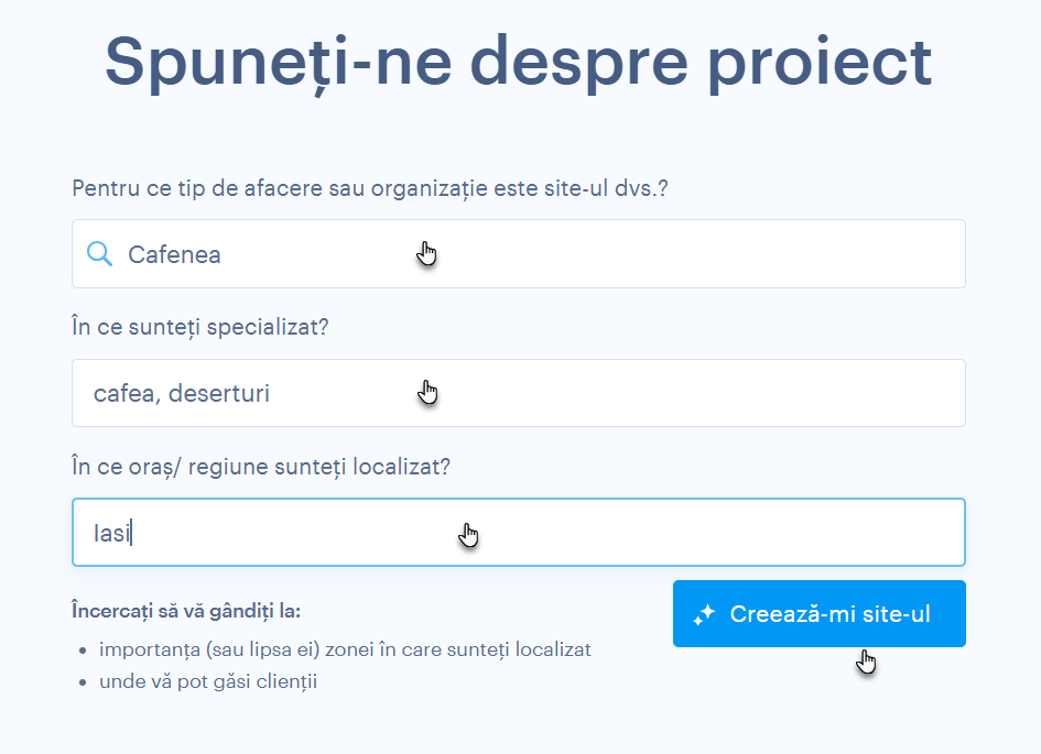 4. Descrieți site-ul web și faceți clic pe butonul Creați-mi site-ul web.