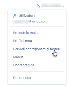 SFAT: Puteți găsi factura pentru o comandă plătită în administrarea proiectului; mai multe informații sunt disponibile în ghidul Cum să descărcați o factură.