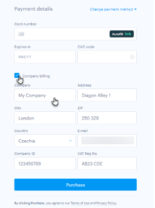 1. Când plasați o nouă comandă, faceți clic pe „Facturare companie” și completați detaliile.
