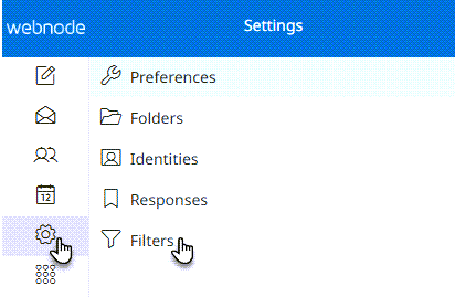 2. În interfața Webmail, faceți clic pe pictograma roată din panoul din stânga și apoi selectați Filtre.