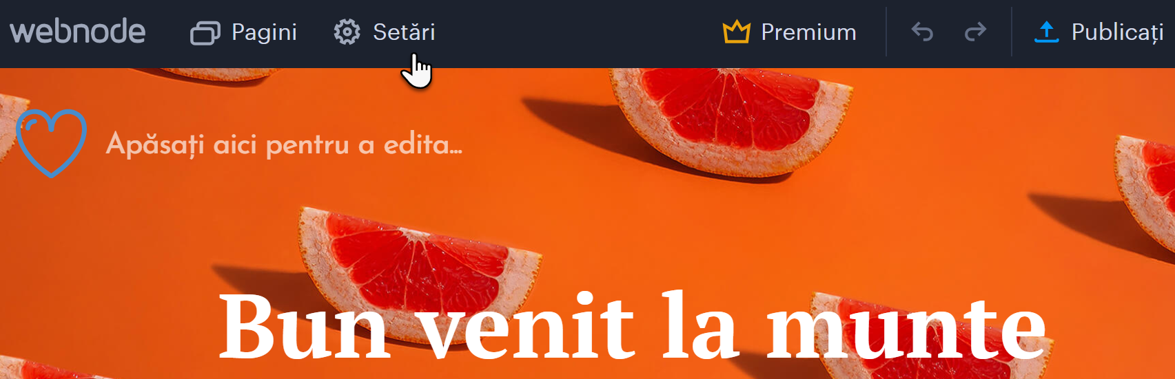 1. Conectați-vă la contul dvs. pe pagina de start Webnode. Odată ce vă aflați în editor, faceți clic pe SETĂRI.
