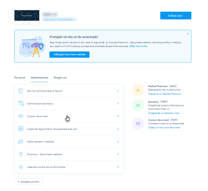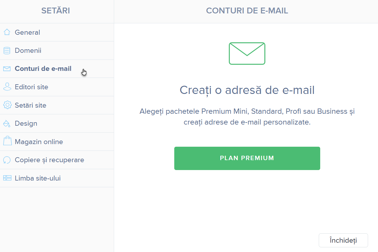 SFAT: Puteți citi e-mailurile în interfața de e-mail Webnode sau le puteți configura într-un client de e-mail precum Outlook.
