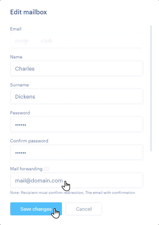 ATENȚIE: În panoul de administrare al proiectului, redirecționarea poate fi configurată către o singură adresă. Dacă doriți să redirecționați către mai multe adrese, această operațiune trebuie efectuată din interfața căsuței poștale (consultați secțiunea corespunzătoare din acest ghid de mai sus).