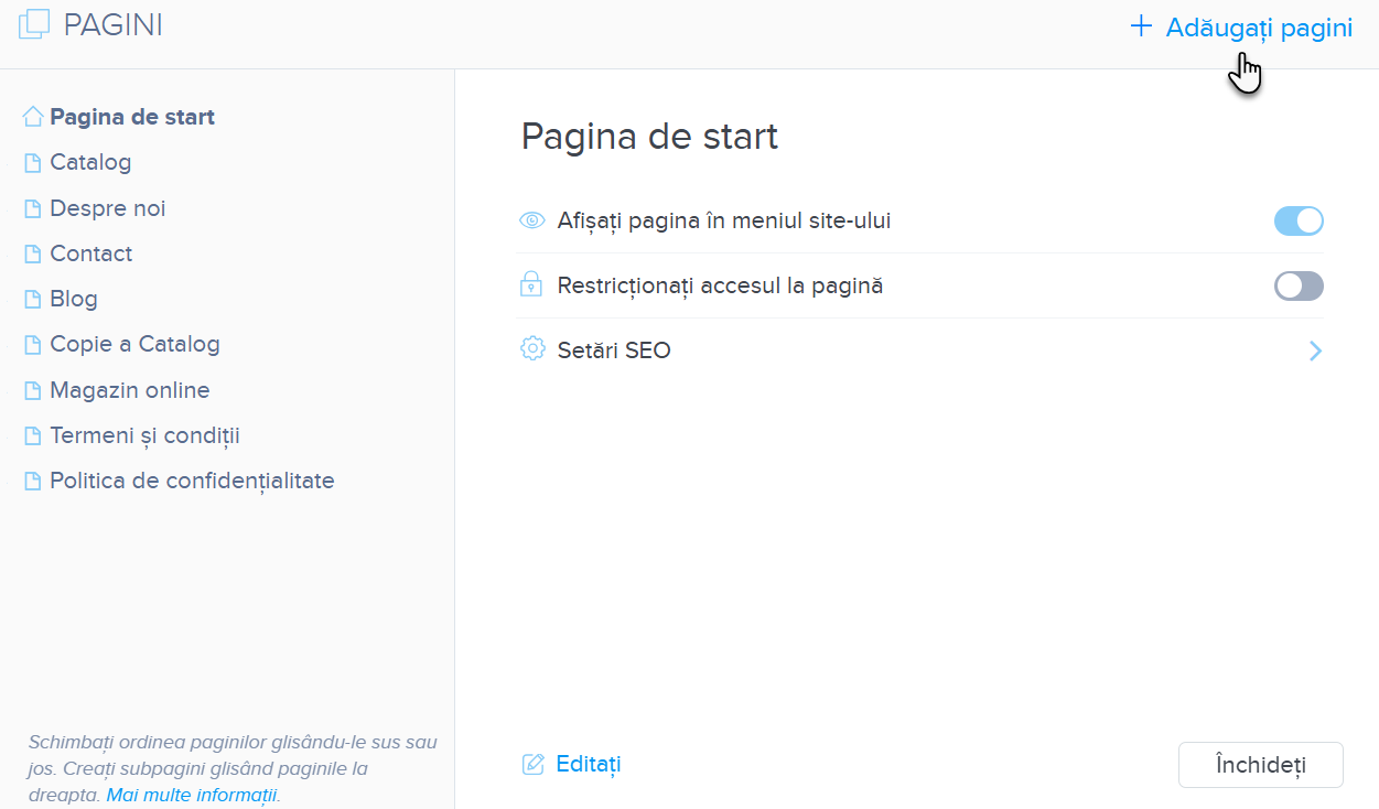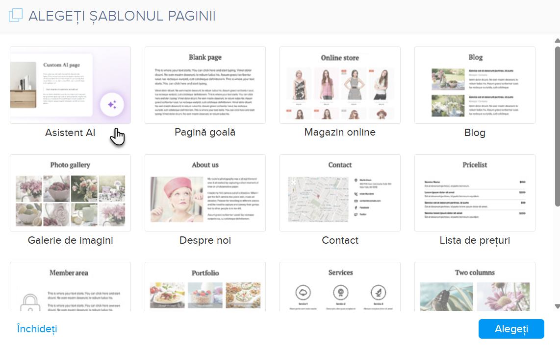 Crearea de pagini bazată pe AI este disponibilă cu planurile premium Standard, Profi sau Business.