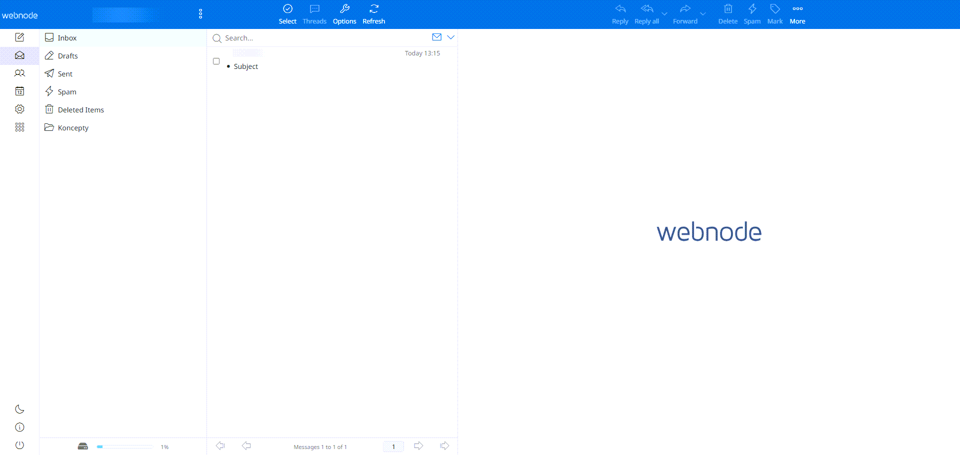 Om du använder den nya Webmailen ser inkorgen ut så här:
